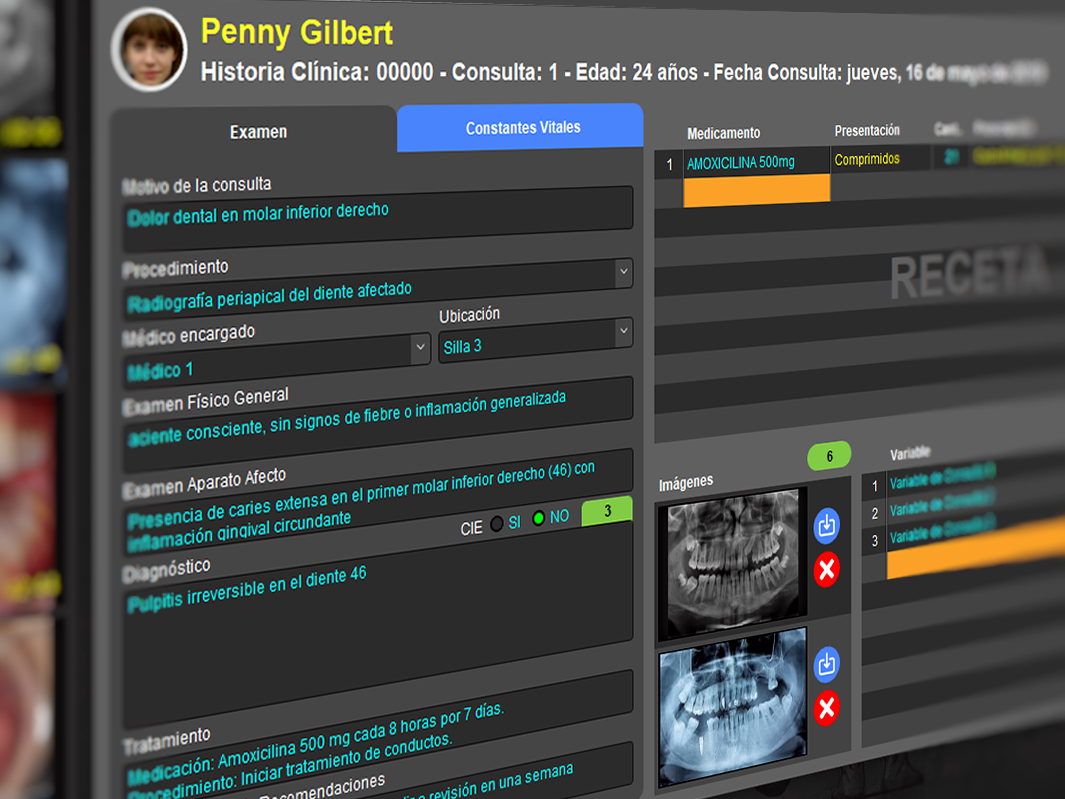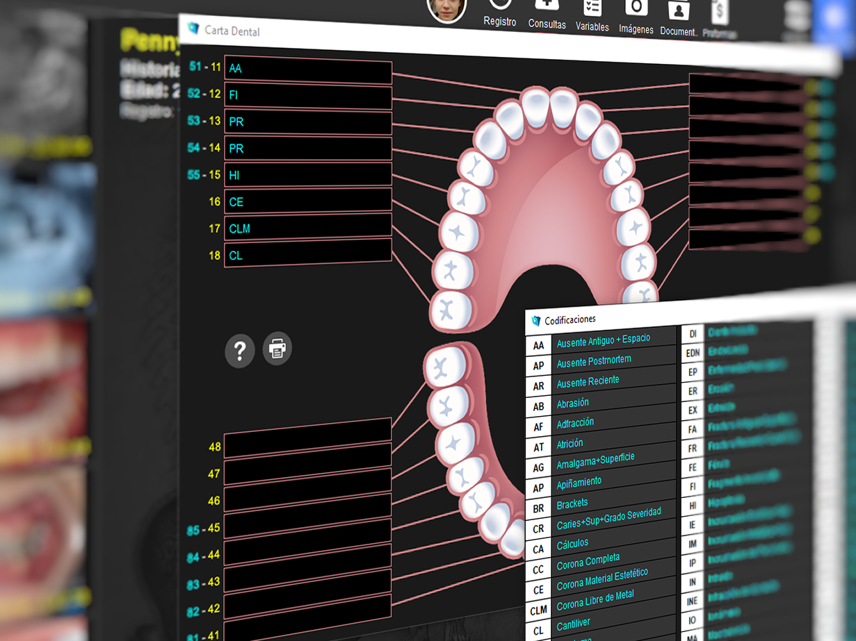 Diseñado en modo oscuro para proteger sus ojos y sus pantallas, Medsys 14 Dental cuenta con una de las bases de datos más poderosas y veloces del mundo. Medsys 14 Dental no es solo una interfaz atractiva, sino que también está preparado para almacenar y gestionar eficientemente millones de datos e imágenes en tiempos récord.